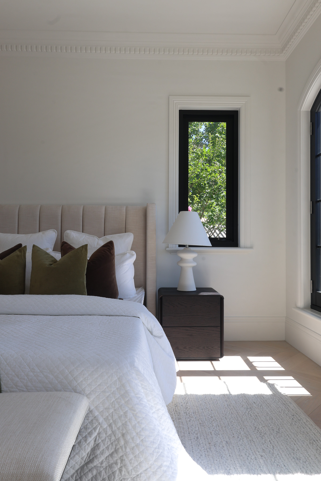 A sculptural chair, textured fabric, or a subtle hit of colour gives the room depth without overwhelming it. Safe doesn’t have to mean boring.