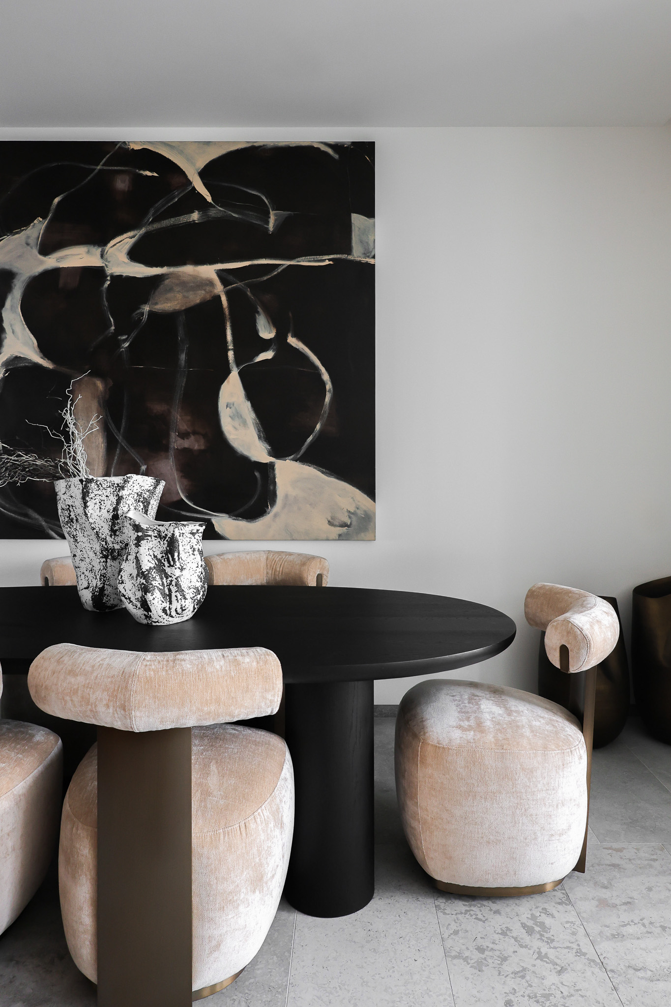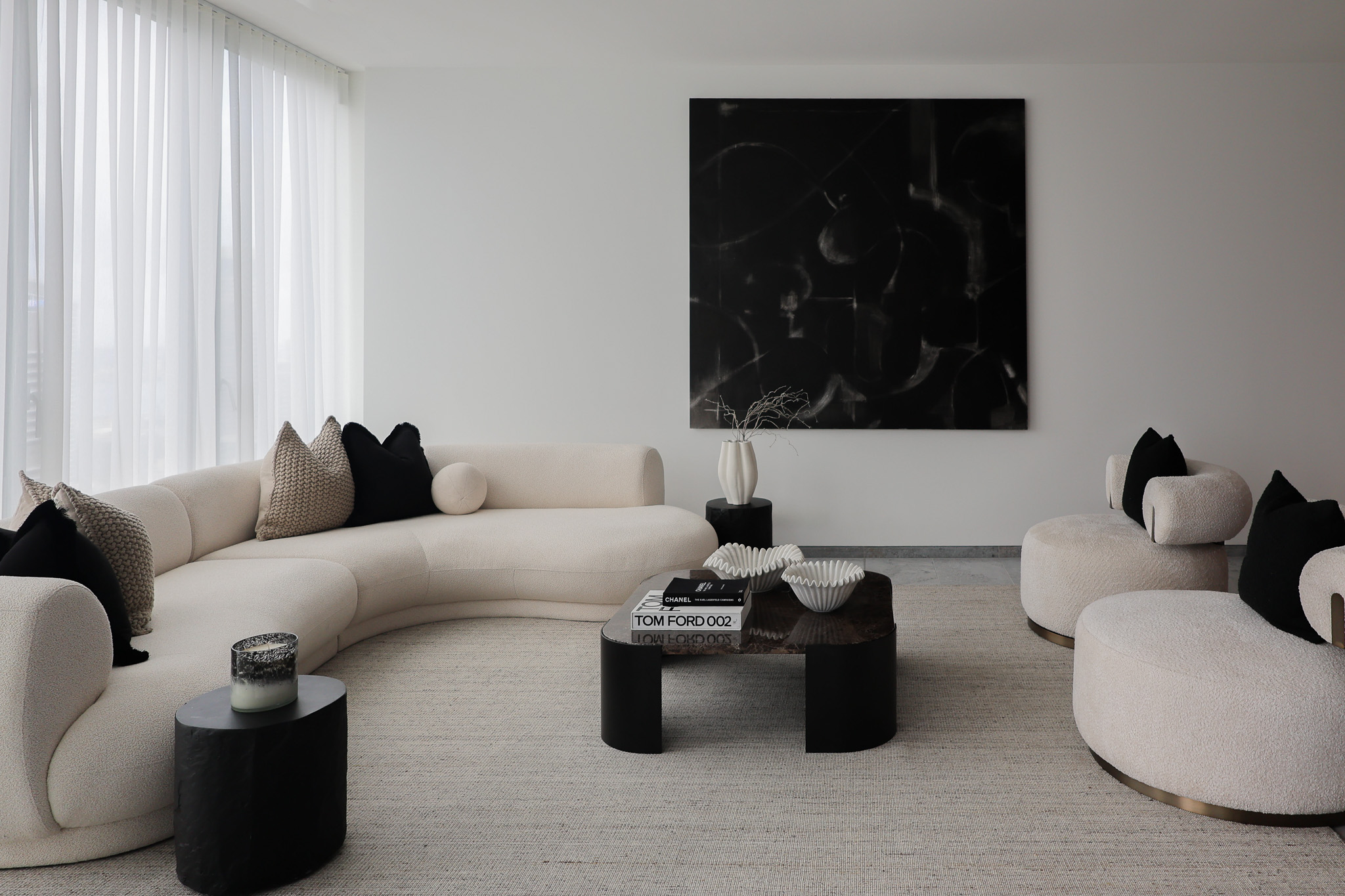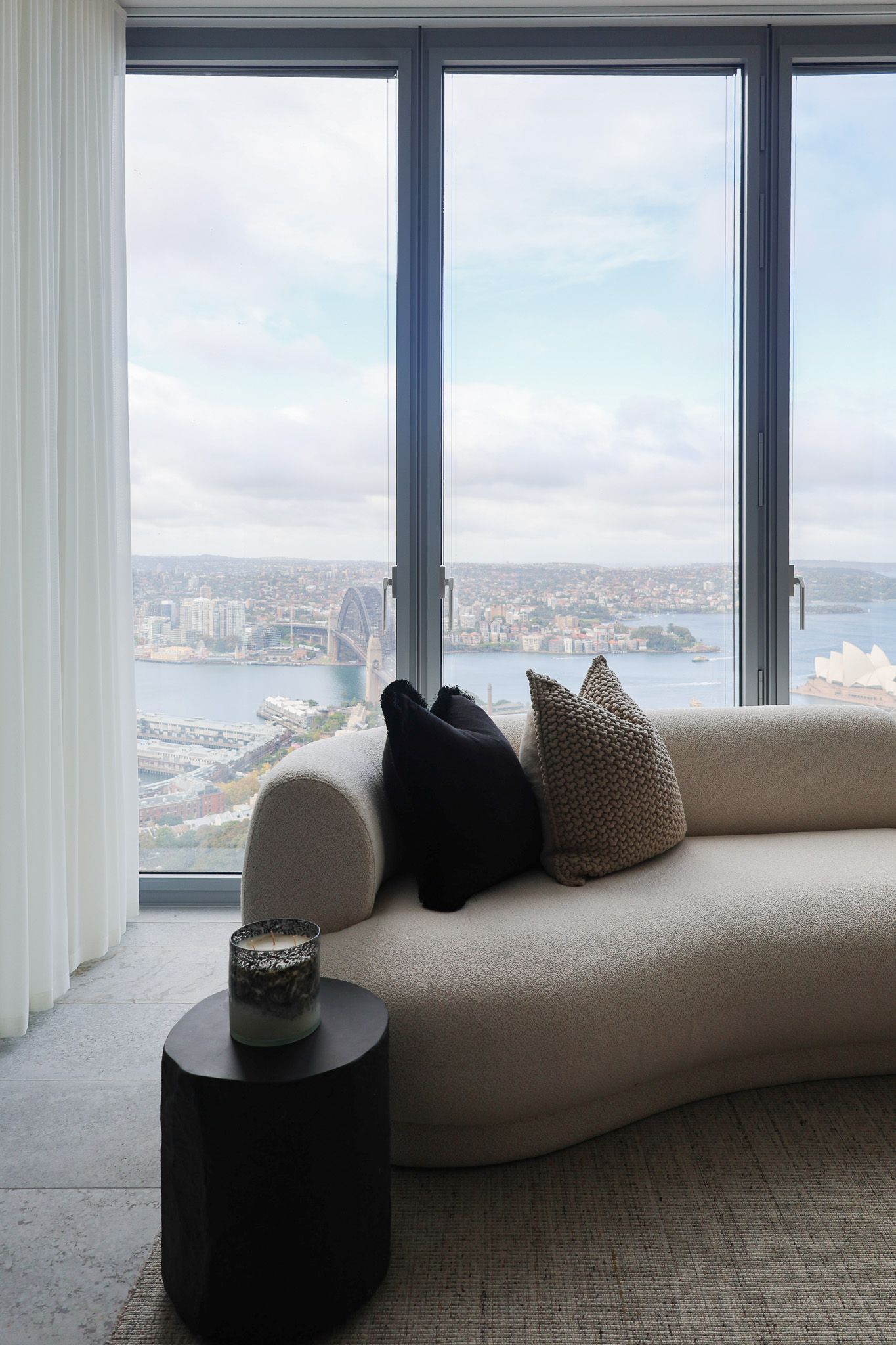 We styled this luxury Barangaroo apartment to honour its breathtaking Sydney Harbour outlook, creating an interior that feels both elevated and effortlessly liveable. A refined, neutral palette was layered with rich textures and sculptural furnishings to frame the view without competing with it, allowing the harbour to remain the hero from every angle.